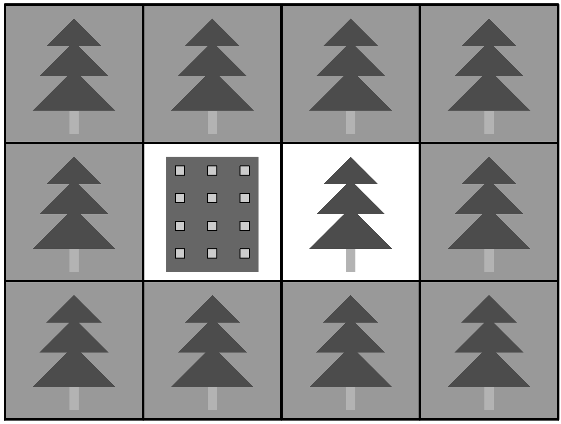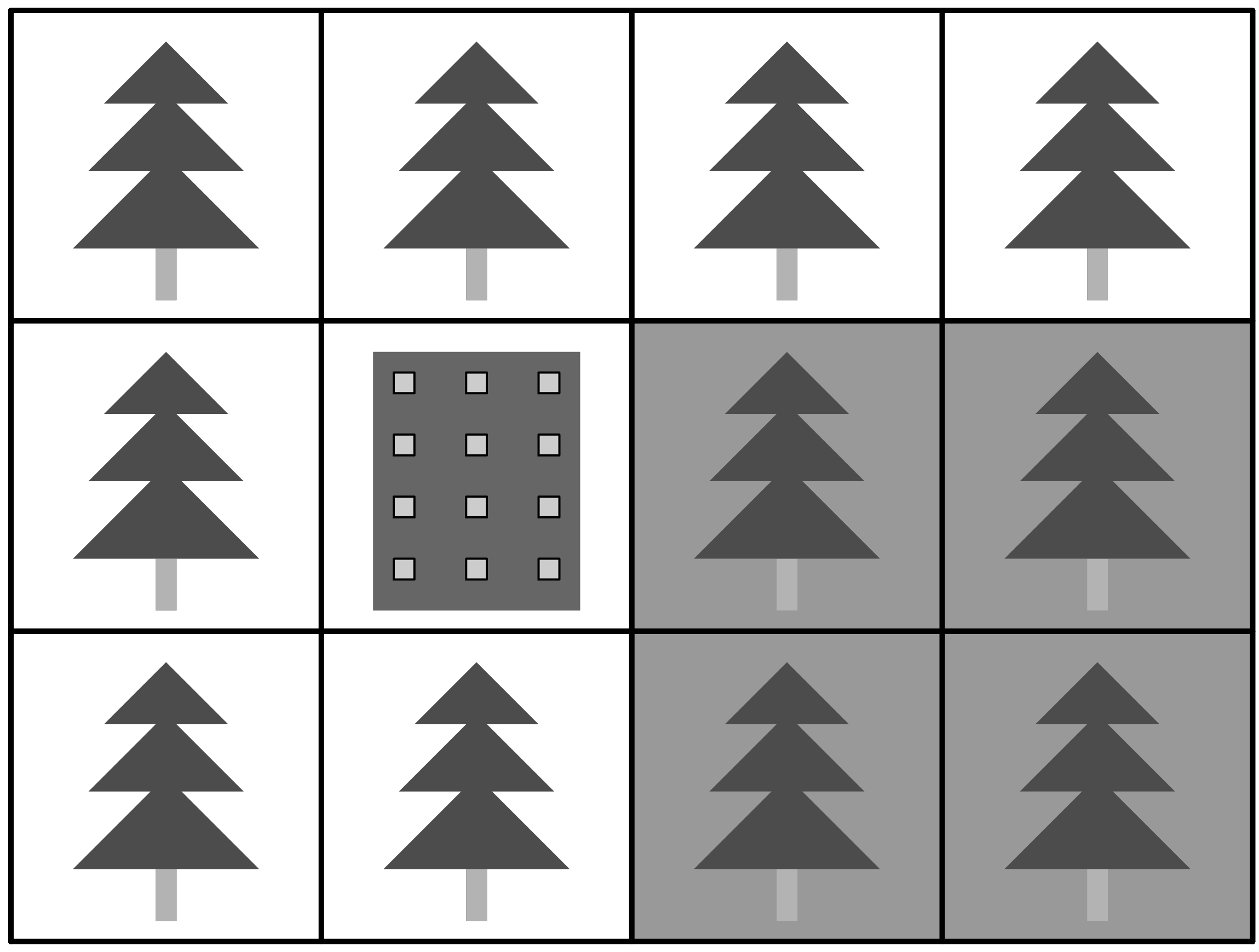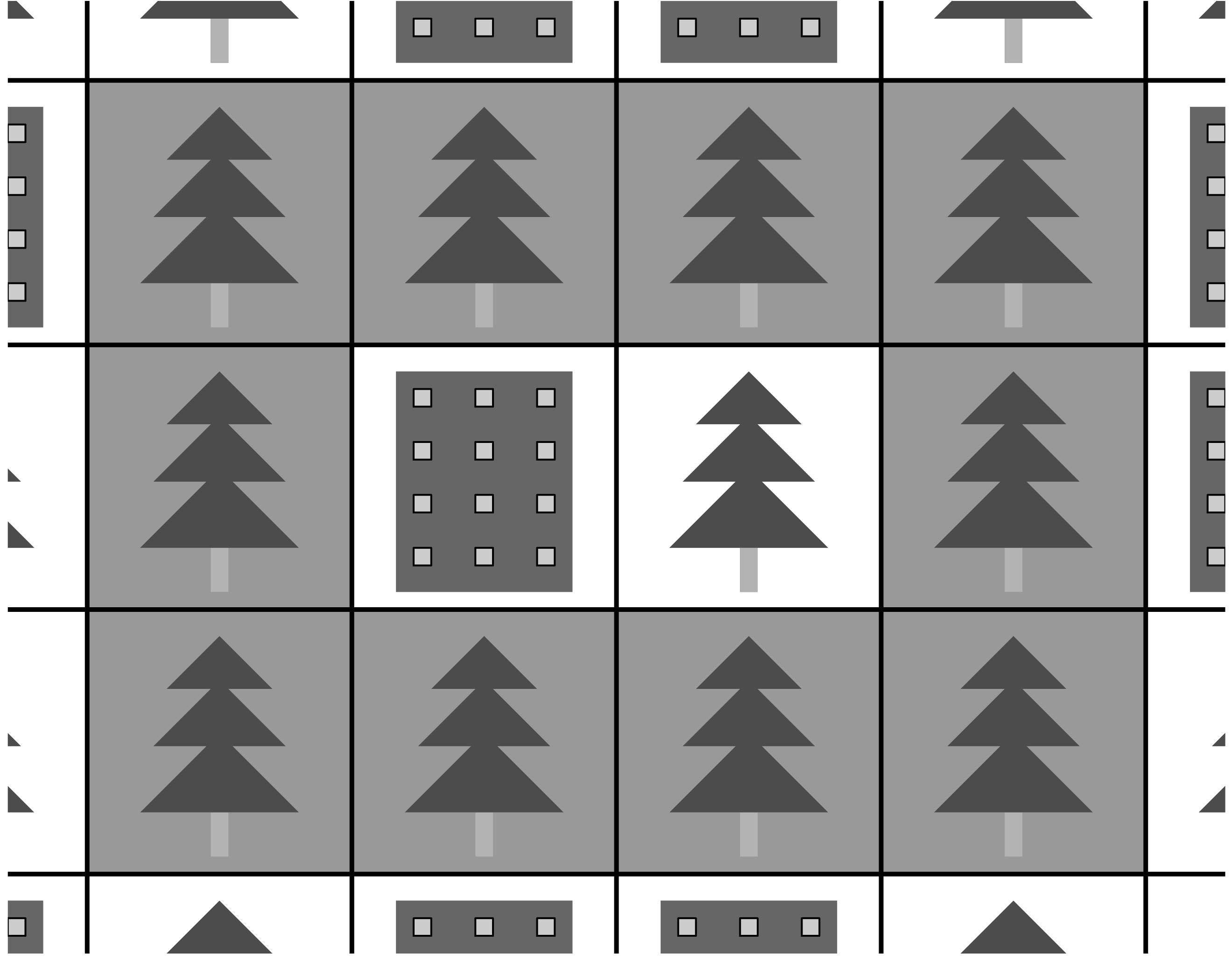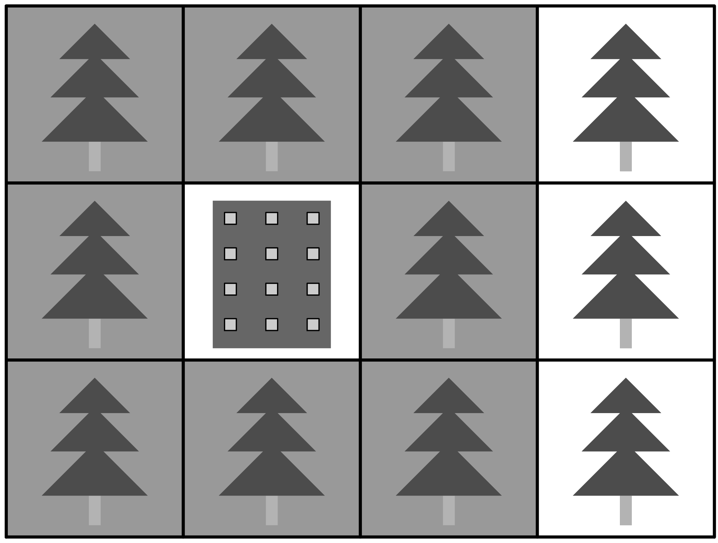 你负责规划一座新城市!这座城市将由一个矩形网格表示,其中每个单元格要么是公园,要么是建筑区。