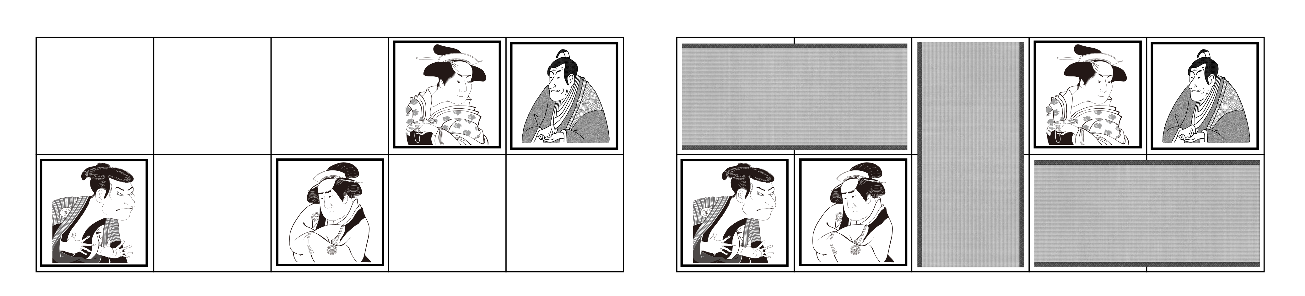 左图显示了样例输入 1 中瓷砖的初始位置,右图显示了移动一块瓷砖并铺设榻榻米以覆盖所有空单元格的一种可能方式。